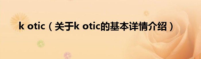 本文关于k otic的基本详情介绍就讲解完毕,希望对大家有所帮助。