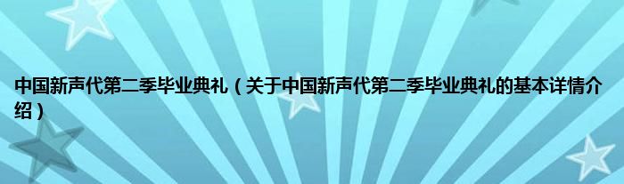 本文关于中国新声代第二季毕业典礼的基本详情介绍就讲解完毕,希望对大家有所帮助。