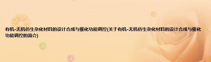 本文关于有机-无机仿生杂化材料的设计合成与催化功能调控的简介就讲解完毕,希望对大家有所帮助。