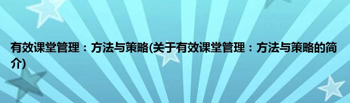 本文关于有效课堂管理:方法与策略的简介就讲解完毕,希望对大家有所帮助。