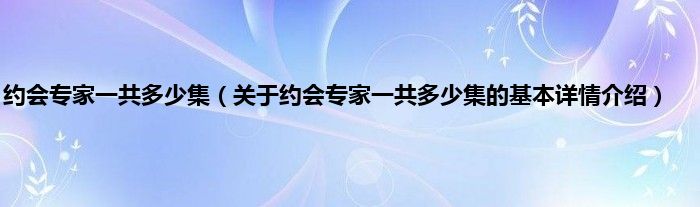本文关于约会专家一共多少集的基本详情介绍就讲解完毕,希望对大家有所帮助。