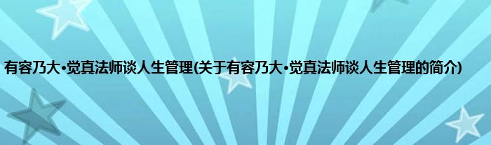 本文关于有容乃大·觉真法师谈人生管理的简介就讲解完毕,希望对大家有所帮助。