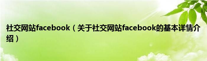 本文关于社交网站facebook的基本详情介绍就讲解完毕,希望对大家有所帮助。