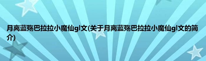 本文关于月离蓝殇巴拉拉小魔仙gl文的简介就讲解完毕,希望对大家有所帮助。