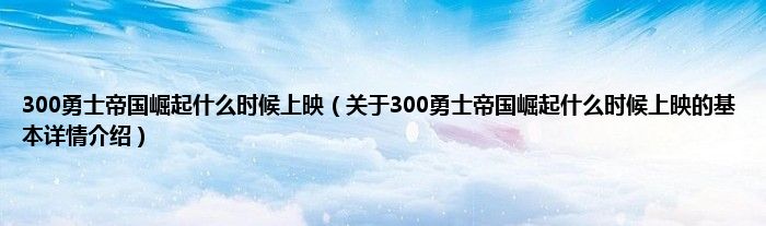本文关于300勇士帝国崛起什么时候上映的基本详情介绍就讲解完毕,希望对大家有所帮助。