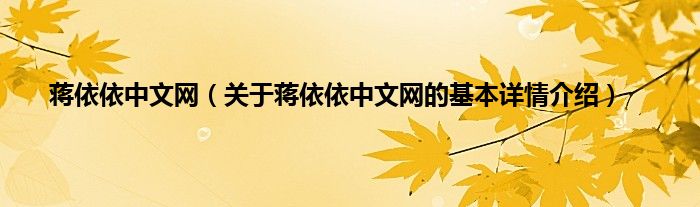 本文关于蒋依依中文网的基本详情介绍就讲解完毕,希望对大家有所帮助。