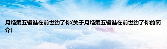 本文关于月焰第五辑谁在前世约了你的简介就讲解完毕,希望对大家有所帮助。