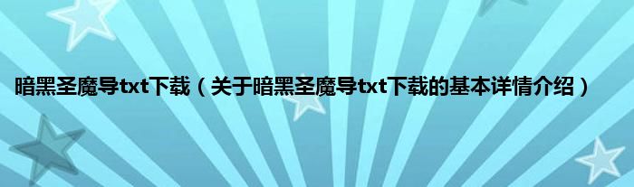 本文关于暗黑圣魔导txt下载的基本详情介绍就讲解完毕,希望对大家有所帮助。