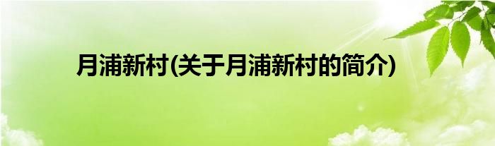 大家好,月浦新村,关于月浦新村的简介很多人还不知道,现在让我们一起来看看吧!