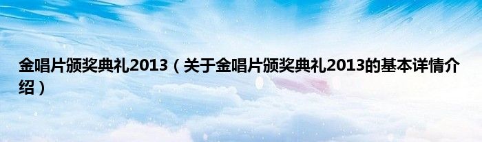 本文关于金唱片颁奖典礼2013的基本详情介绍就讲解完毕,希望对大家有所帮助。