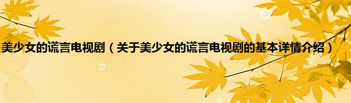 本文关于美少女的谎言电视剧的基本详情介绍就讲解完毕,希望对大家有所帮助。