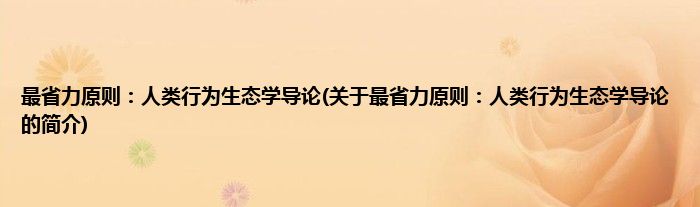 本文关于最省力原则:人类行为生态学导论的简介就讲解完毕,希望对大家有所帮助。