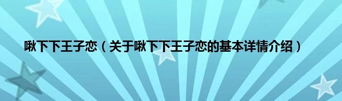 本文关于啾下下王子恋的基本详情介绍就讲解完毕,希望对大家有所帮助。