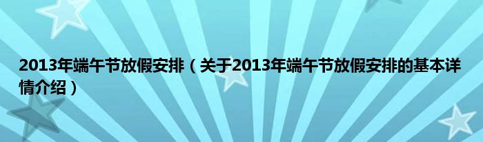 本文关于2013年端午节放假安排的基本详情介绍就讲解完毕,希望对大家有所帮助。