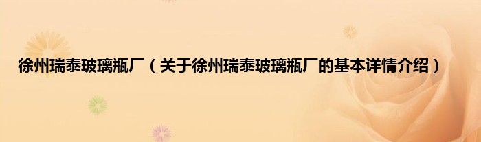 本文关于徐州瑞泰玻璃瓶厂的基本详情介绍就讲解完毕,希望对大家有所帮助。