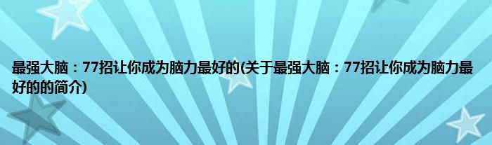 本文关于最强大脑:77招让你成为脑力最好的的简介就讲解完毕,希望对大家有所帮助。