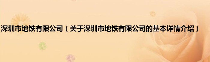 本文关于深圳市地铁有限公司的基本详情介绍就讲解完毕,希望对大家有所帮助。