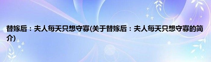 替嫁后:夫人每天只想守寡(关于替嫁后:夫人每天只想守寡的简介)