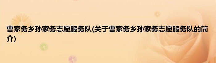 本文关于曹家务乡孙家务志愿服务队的简介就讲解完毕,希望对大家有所帮助。