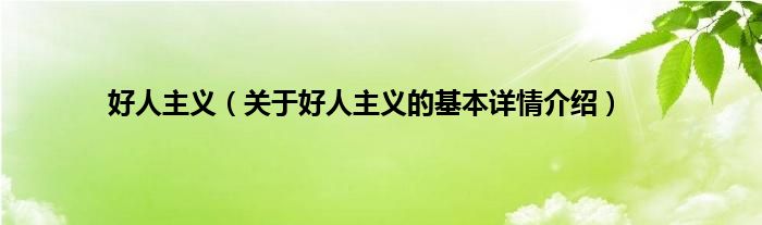 本文关于好人主义的基本详情介绍就讲解完毕,希望对大家有所帮助。