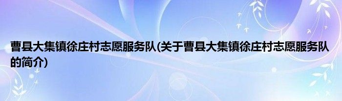 本文关于曹县大集镇徐庄村志愿服务队的简介就讲解完毕,希望对大家有所帮助。