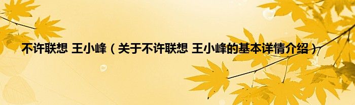 大家好我是小蝌蚪,不许联想 王小峰,关于不许联想 王小峰的基本详情介绍很多人还不知道,那么现在让我们一起来看看吧!