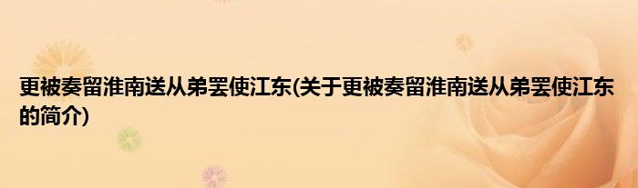 本文关于更被奏留淮南送从弟罢使江东的简介就讲解完毕,希望对大家有所帮助。