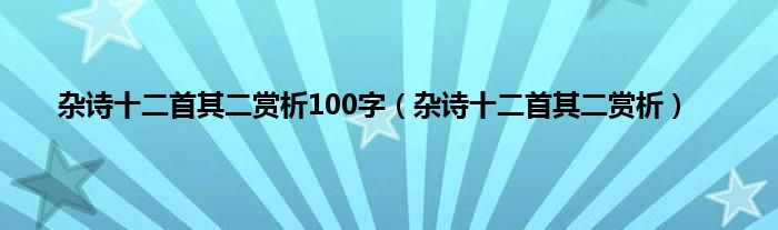 以上就是【杂诗十二首其二赏析100字,杂诗十二首其二赏析】相关内容。