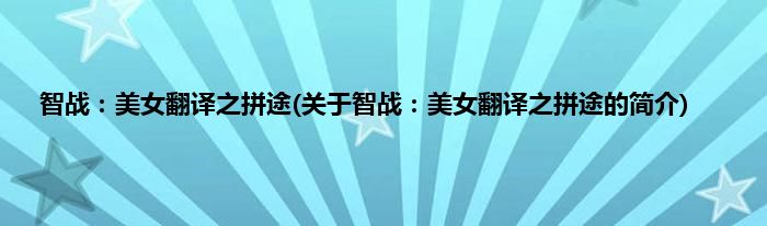 本文关于智战:美女翻译之拼途的简介就讲解完毕,希望对大家有所帮助。