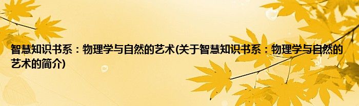 本文关于智慧知识书系:物理学与自然的艺术的简介就讲解完毕,希望对大家有所帮助。