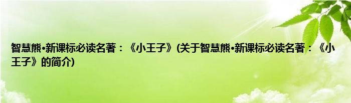 本文关于智慧熊·新课标必读名著:《小王子》的简介就讲解完毕,希望对大家有所帮助。