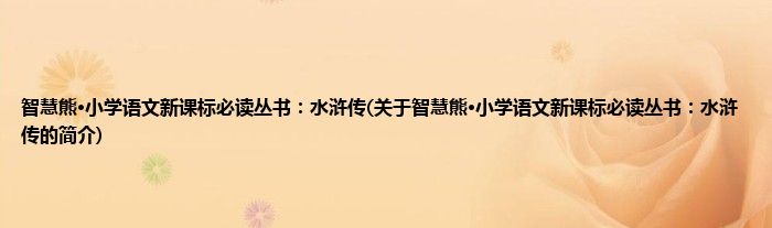 大家好,智慧熊·小学语文新课标必读丛书:水浒传,关于智慧熊·小学语文新课标必读丛书:水浒传的简介很多人还不知道,现在让我们一起来看看吧!