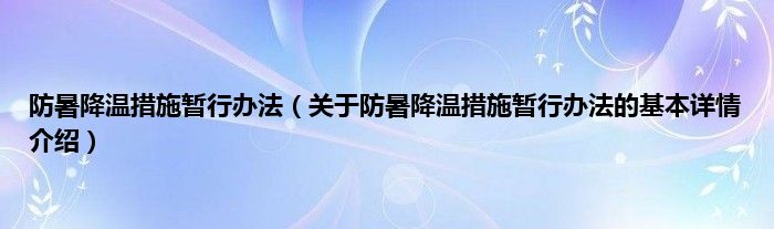 本文关于防暑降温措施暂行办法的基本详情介绍就讲解完毕,希望对大家有所帮助。