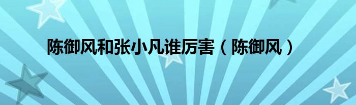 以上就是【陈御风和张小凡谁厉害,陈御风】相关内容。