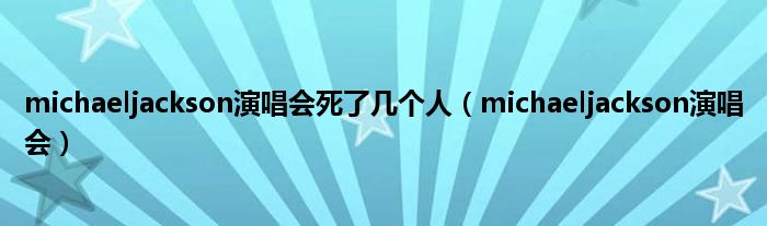 大家好,小问来为大家解答以上问题。michaeljackson演唱会死了几个人,michaeljackson演唱会这个很多人还不知道,现在让我们一起来看看吧!
