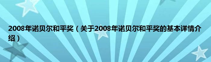 本文关于2008年诺贝尔和平奖的基本详情介绍就讲解完毕,希望对大家有所帮助。