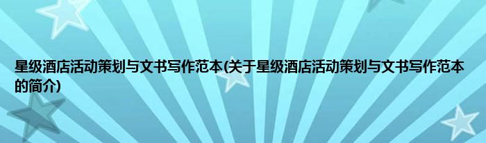本文关于星级酒店活动策划与文书写作范本的简介就讲解完毕,希望对大家有所帮助。