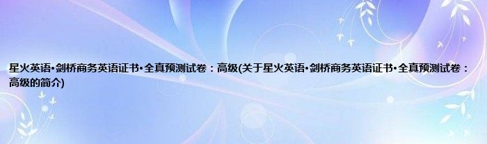 本文关于星火英语·剑桥商务英语证书·全真预测试卷:高级的简介就讲解完毕,希望对大家有所帮助。