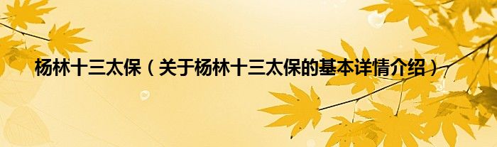本文关于杨林十三太保的基本详情介绍就讲解完毕,希望对大家有所帮助。