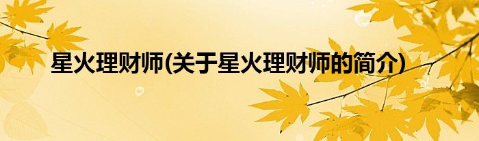 本文关于星火理财师的简介就讲解完毕,希望对大家有所帮助。