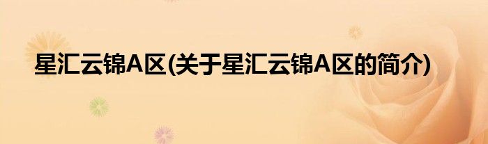 星汇云锦A区(关于星汇云锦A区的简介)