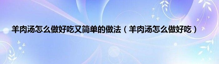 以上就是【羊肉汤怎么做好吃又简单的做法,羊肉汤怎么做好吃】相关内容。