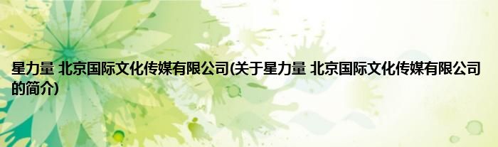 本文关于星力量 北京国际文化传媒有限公司的简介就讲解完毕,希望对大家有所帮助。
