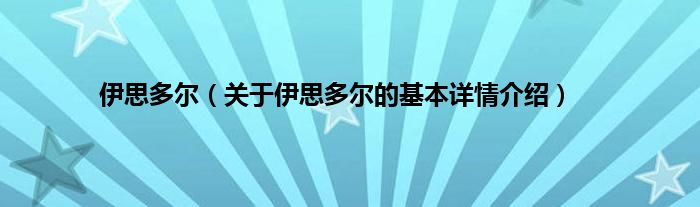 本文关于伊思多尔的基本详情介绍就讲解完毕,希望对大家有所帮助。