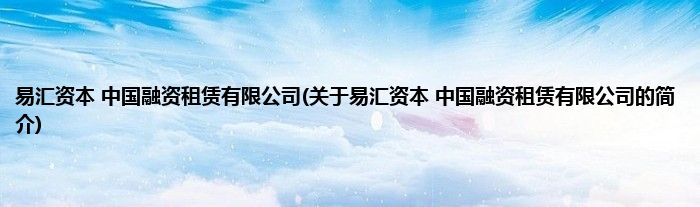 本文关于易汇资本 中国融资租赁有限公司的简介就讲解完毕,希望对大家有所帮助。