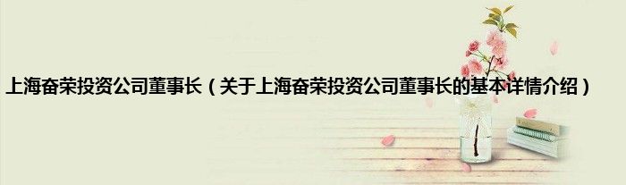 本文关于上海奋荣投资公司董事长的基本详情介绍就讲解完毕,希望对大家有所帮助。