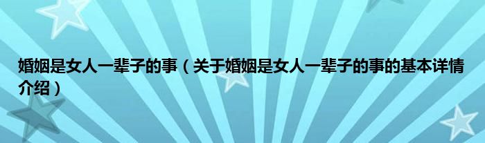 婚姻是女人一辈子的事(关于婚姻是女人一辈子的事的基本详情介绍)