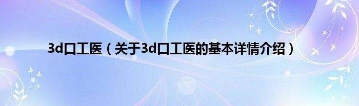 本文关于3d口工医的基本详情介绍就讲解完毕,希望对大家有所帮助。