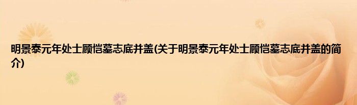 大家好,明景泰元年处士顾恺墓志底并盖,关于明景泰元年处士顾恺墓志底并盖的简介很多人还不知道,现在让我们一起来看看吧!