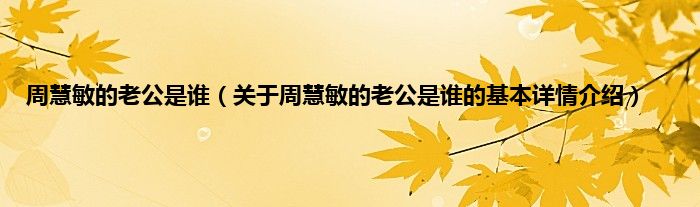 本文关于周慧敏的老公是谁的基本详情介绍就讲解完毕,希望对大家有所帮助。